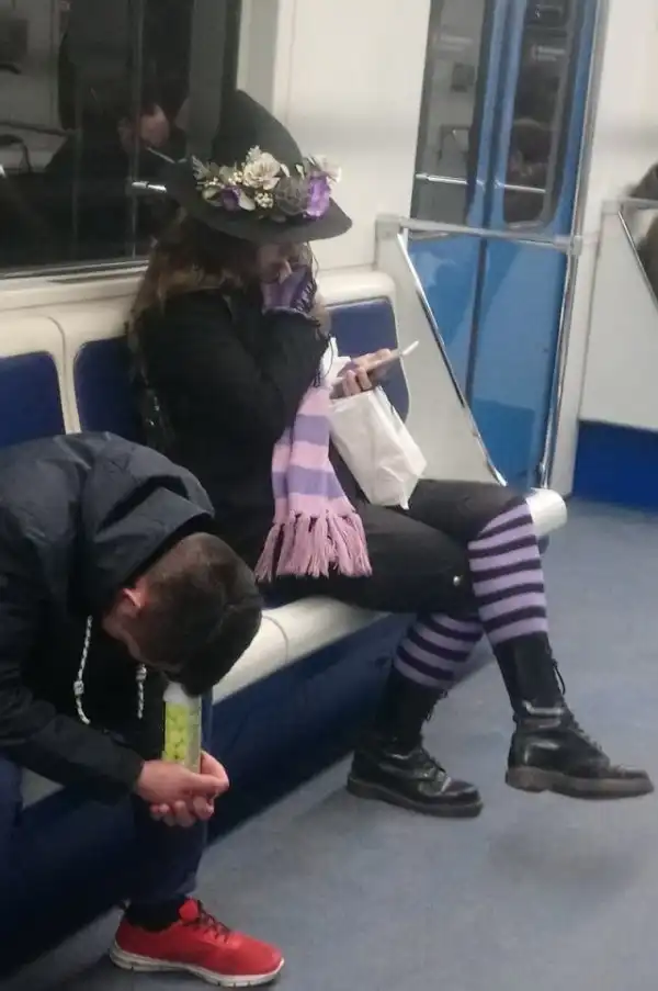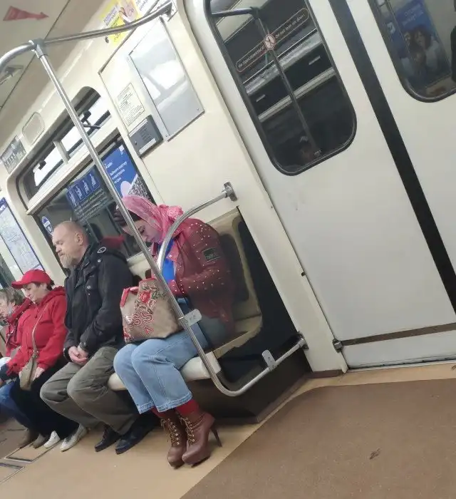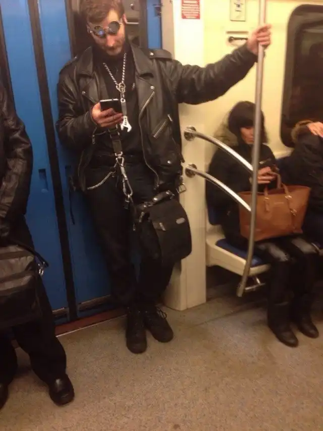 Свежая подборка фотокарточек со странными и категорически "модными" персонажами, которых можно встретить в российском метрополитене.
