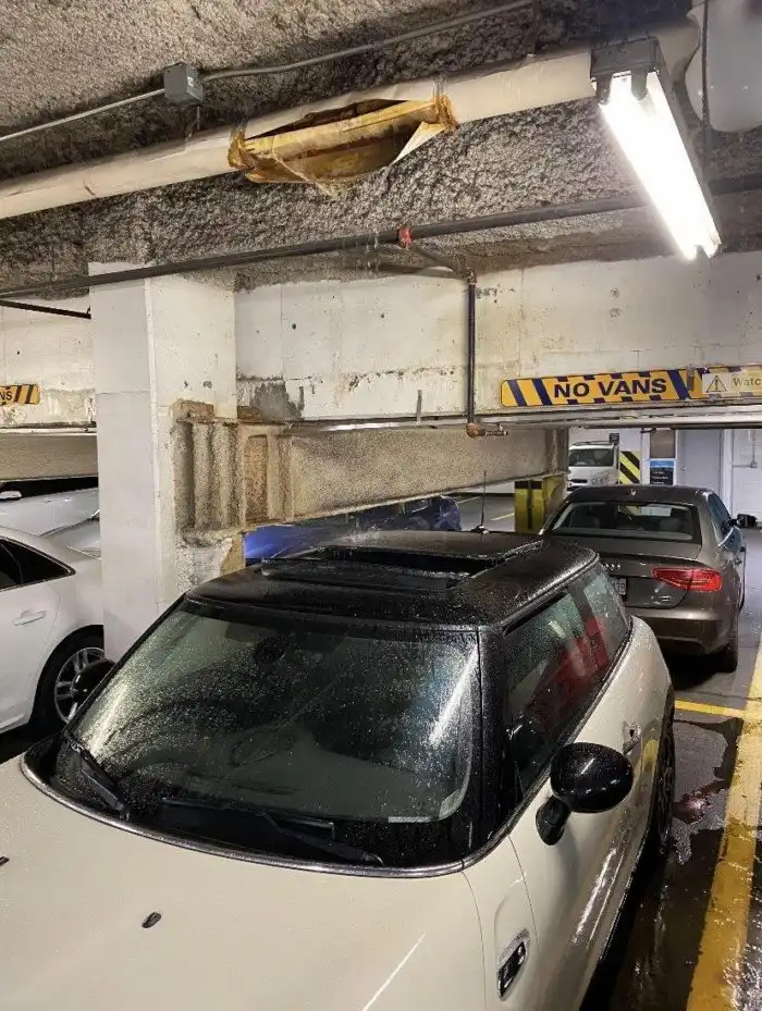 9. "Кто-то оставил машину на подземной парковке, не закрыв люк, и над ней лопнула труба"