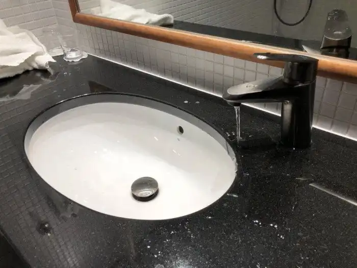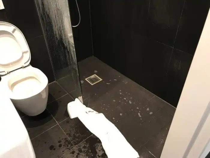 Вода не успевает стекать достаточно быстро, поэтому затапливается остальная часть ванной комнаты.
