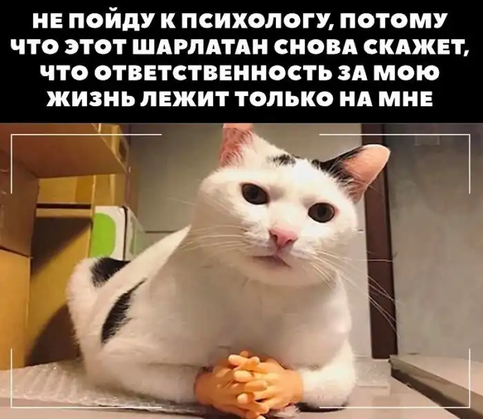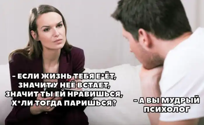 Подборка забавных мемов, твиттов и переписок. Ну а в центре всего этого психотерапия. Кстати, нет людей, которым бы не требовалась помощь психотерапевта. Просто многие отлично шифруются.