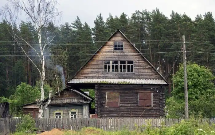 7. Иркутская область. Лет 5 назад. Заделали кровлю при помощи баннера