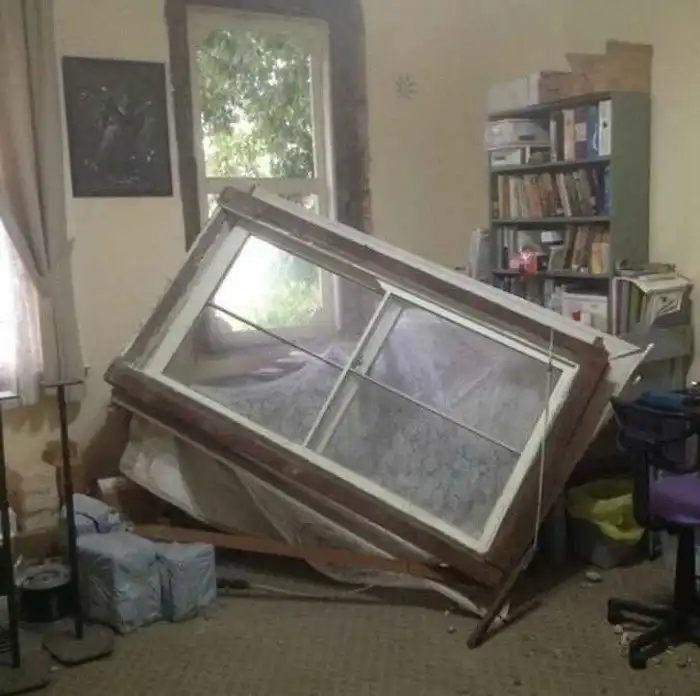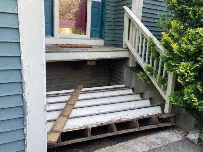 У кого-то обвалилась лестница к входной двери. Утро начинается не с кофе
