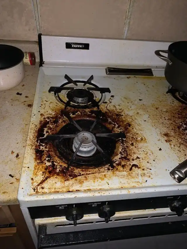 Моя свекровь что-то готовила, и оставила плиту в таком жутком состоянии