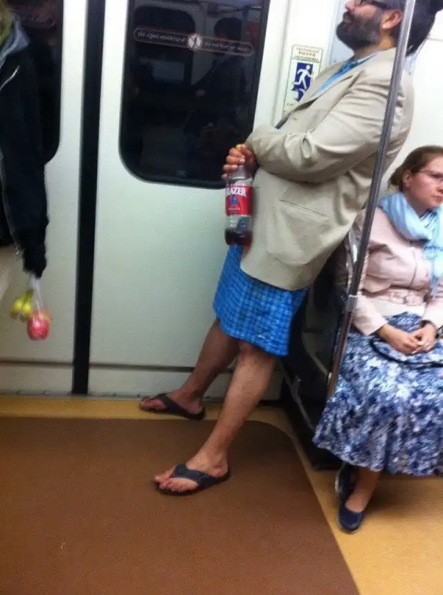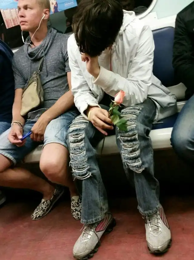 Свежая подборка фотокарточек со странными и убийственно "модными" персонажами, которых можно встретить в российском метро.