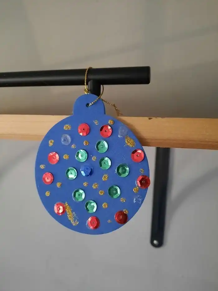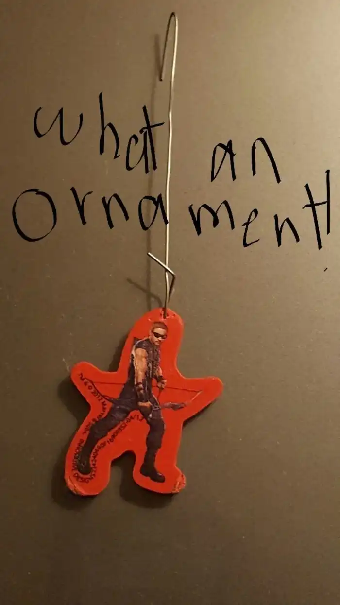 10. "Дочка сделала это украшение из ластика и скрепки. Вешаю его на елку уже 10 лет"