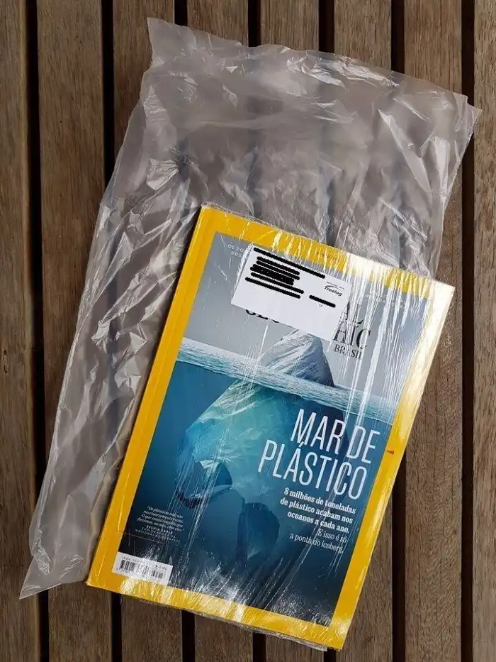 Книга о вреде пластика упакована в несколько слоев пластика