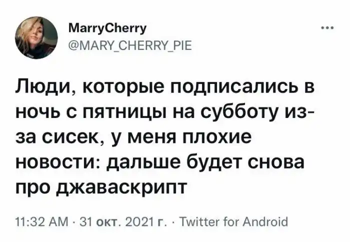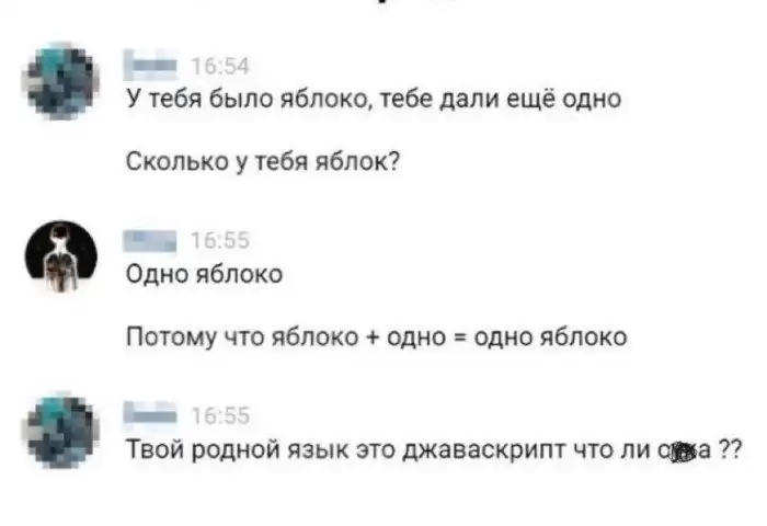 Если вы заняты в онлайн-разработке, то вам можно лишь посочувствовать. Отборные шутки о гадком скриптовом языке. Почему? Потому что 1+1=1.