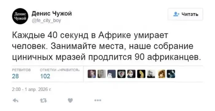 Для многих данных пост может показаться максимально жёстким, поэтому лучше не рисковать. Все остальные, кто считает себя истинным циником, милости просим в чёрный пост о чёрном юморе.