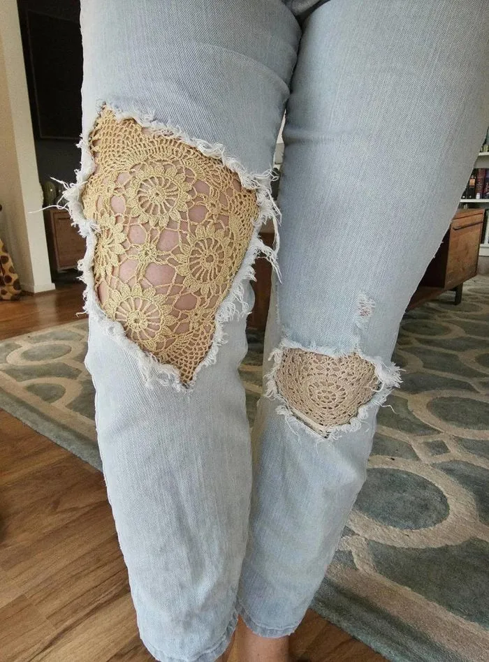 22. "Пришила кружевные салфетки на дырки в джинсах. Но получилось что-то не то, что ожидала"