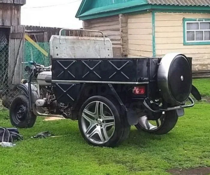 Странные поделки, созданные непонятно с какой целью. Вентилируемые багажники, хачапурохинкали, винтовкогранатомётоштыки... Здесь явно не обошлось без психического расстройства и скотча.