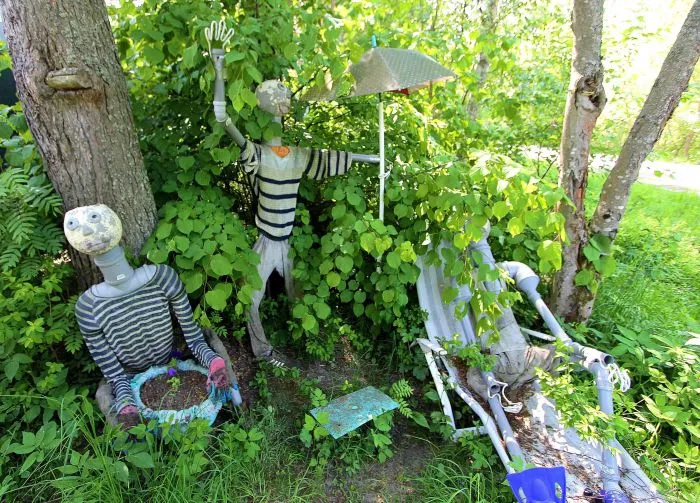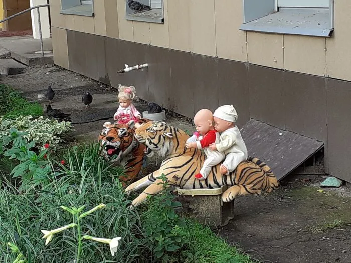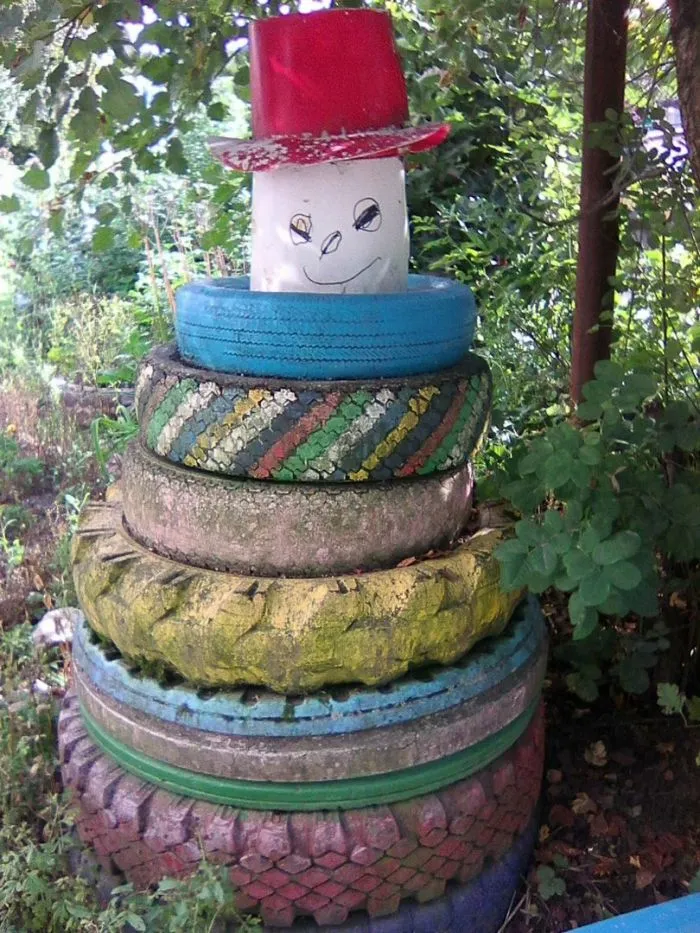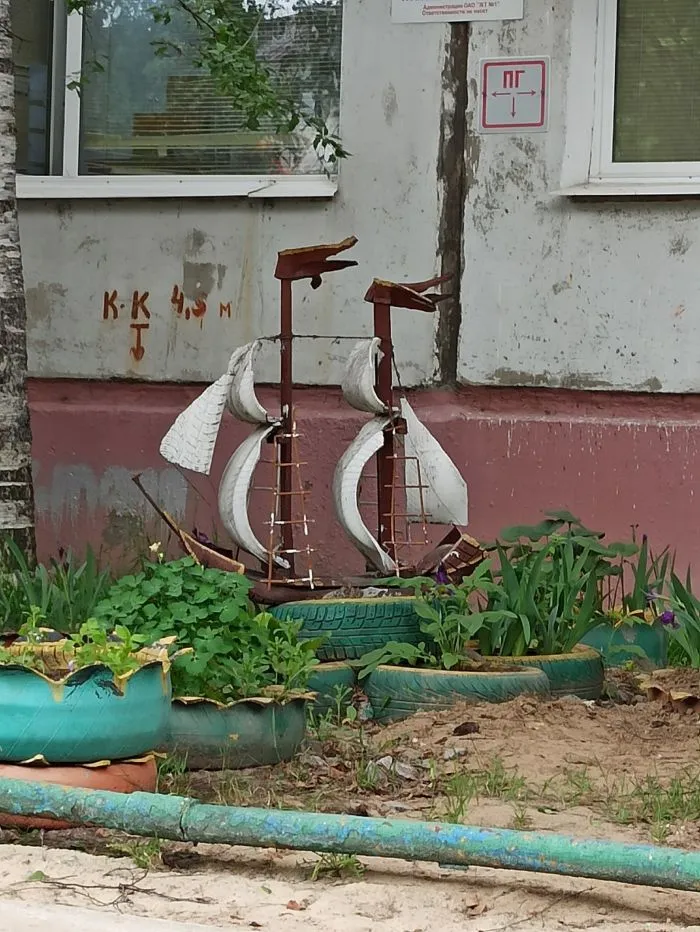 Облагородить территорию двора - мечта многих жителей. Только вместо новых площадок и прикольных украшений там появляются классические фигуры из покрышек и немного пугающие декорации, как из фильма ужасов.