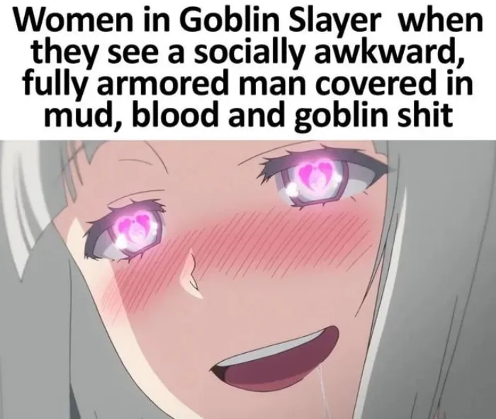 Женщины в "Goblin Slayer" когда они видят социально неадаптированного парня в броне, покрытого грязью, кровью и дерьмом гоблинов