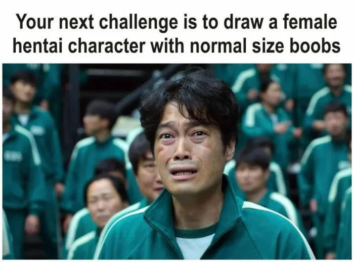 Ваше следующее задание это нарисовать женского персонажа хентая с бубсами нормального размера