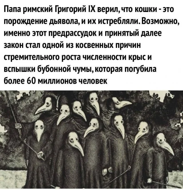 По мнению Папы Григория IX, вспышку бубонной чумы в 1348 году часто связывают с полномасштабной резней кошек. Приписывается Воксу в Раме, но эта теория несостоятельна, поскольку это был лишь один случай чумы среди многих; чума убивала европейцев задолго до 1233 года.