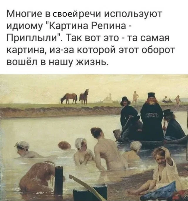 Ставшее идиомой расхожее выражение «картина Репина „Приплыли“» известно всем, означает патовую ситуацию или конфуз.