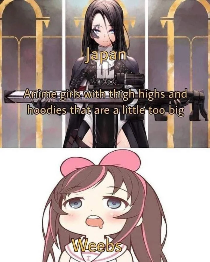 Аниме-девочки в чулках и в толстовках, которые им немного великоваты