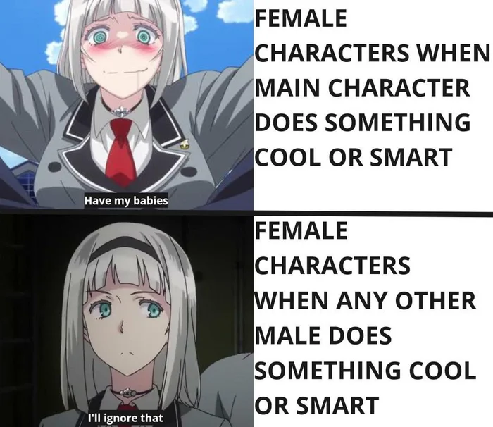 Женский персонаж когда другой парень сделал что-то крутое или милое: Я это проигнорирую.