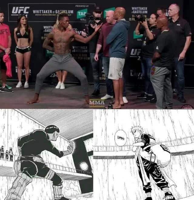 Израэль Адесанья - известный анимушник в MMA. У него ещё печать 8 триграмм на животе (чтобы лиса удерживать). Сам же он говорил что косплеит Рока ЛиДевушки после мастурбации: Я так хорошо кончила.