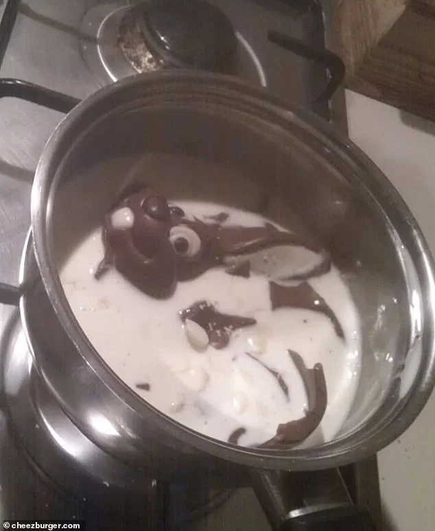 Это всего лишь шоколадный заяц, из которого пытаются сделать горячий шоколад. И он смотрит прямо на вас