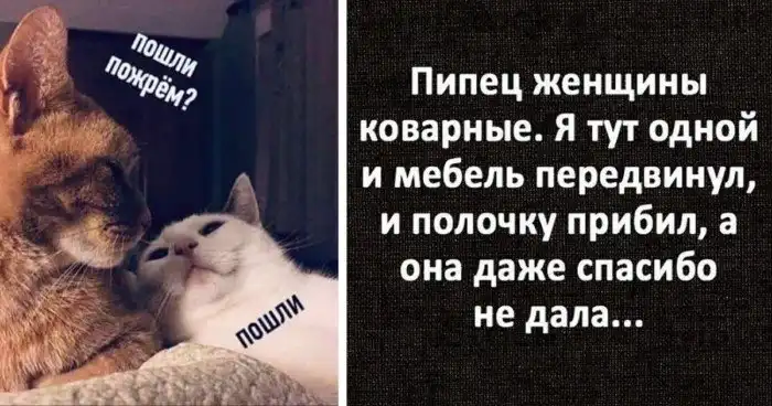 Да, отношения между мужчинами и женщинами - тема довольно сложная и многогранная. Однако это отнюдь не значит, что в ней нет места юмору! Отношениям пользователи социальных сетей посвящают довольно много забавных и правдивых шуток и мемов - некоторые из них в этой небольшой подборке.