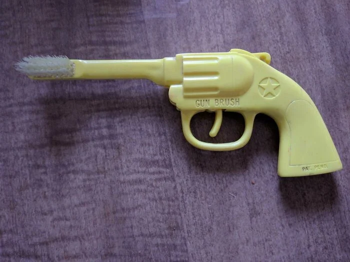 23. Зубная щетка в виде пистолета. Курок даже щелкает при нажатии