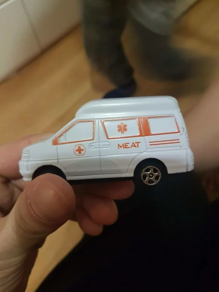 31. Игрушечная машина скорой помощи с надписью "Мясо"