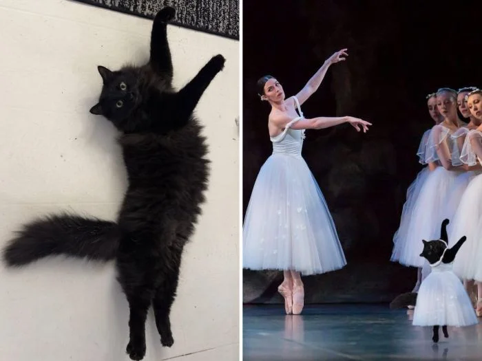 Кажется, эта кошка выступает в роли чёрного лебедя, а если это не так, она точно успешно прошла бы пробы на эту роль.