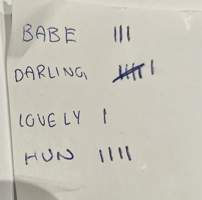 15. «Список кличек домашних питомцев, которыми называли мою 18-летнюю официантку в течение часа. Милашка, лапочка, дорогуша, детка...»
