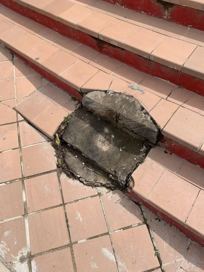 Пень, встроенный в лестницу