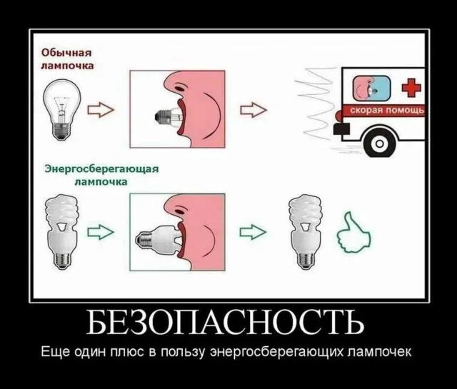 Про лампочки. У меня друг в скорой работает. Так эти энергосберегающие спиральки теперь не в рот суют, а прямиком в анус. Потом выкрутить не могут🤣