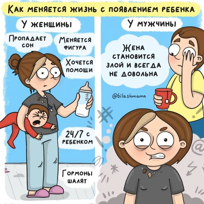 Bilashmama - это комиксы про мам и для пап. Автор рассказывает с юмором про жизнь с ребёнком, спасая от депрессии сотни мам.