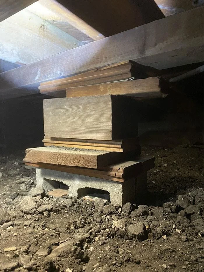 10. Основные несущие балки этого дома на сваях страдают от сильного гниения древесины