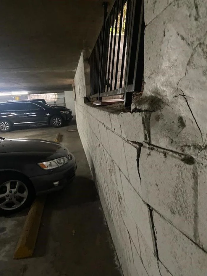 8. Подземный гараж этого жилого комплекса начал разрушаться. Сверху три этажа