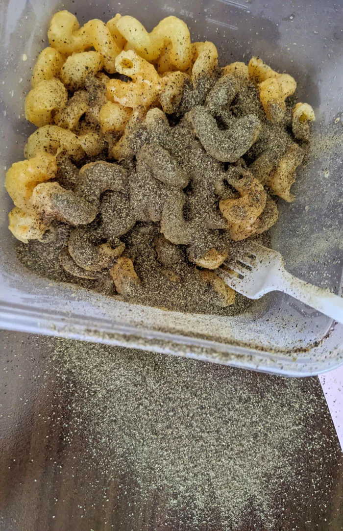 Я взял обед с собой на работу и хотел добавить немного перца, но мой коллега забыл плотно закрыть упаковку