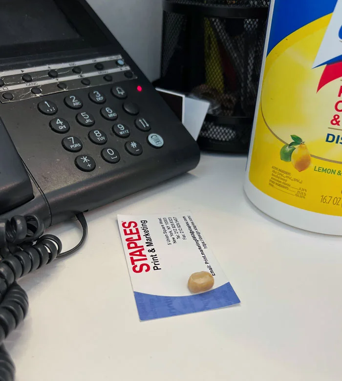Нам с коллегой приходится делить один и тот же стол, и это уже второй раз, когда он это делает. Он утверждает, что достает зуб, когда ест.