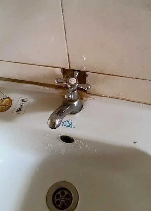 А что ещё ему оставалось делать, если уже установил раковину и купил кран?