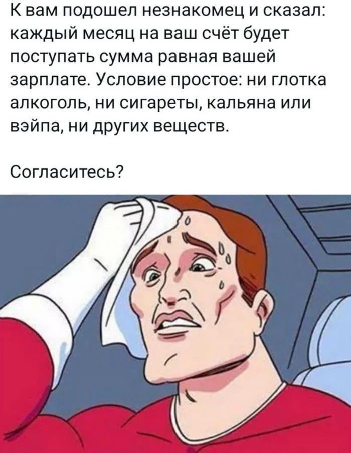 Не курю, не пью, кальян ни разу в жизни не пробовал, как и другие вещества, где мое бабло????