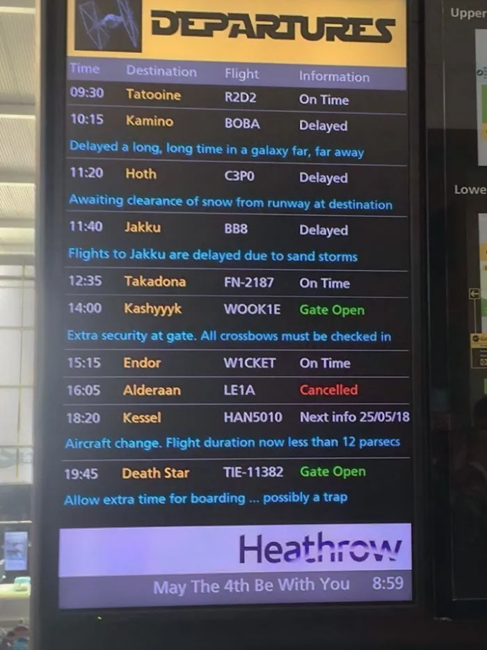 6. «Лондонский аэропорт Хитроу, 4 мая 2018 года. May the 4th be with you, Да пребудет с вами сила!»