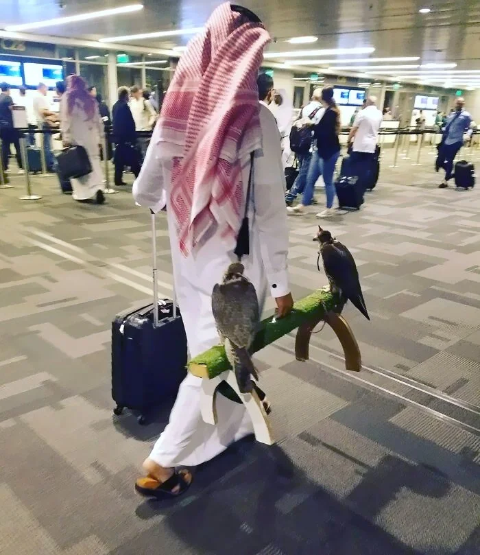 25. «Пассажир и его соколы в аэропорту Дохи в Катаре»