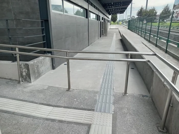 2. Дорожку для слепых перегораживают перила
