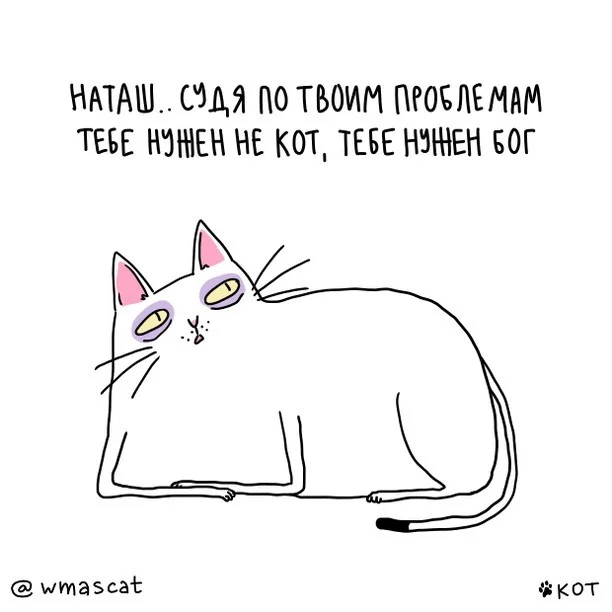 У всех бывают периоды, когда всё в жизни идёт не так. Котик из этих комиксов постоянно стремится к лучшей жизни, но всё идёт не так. Ему хочется то напиться, то спать... Автор довольно популярен в соцсетях, на него подписаны 18 тыс. пользователей.