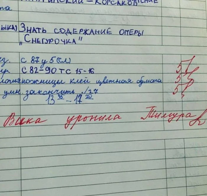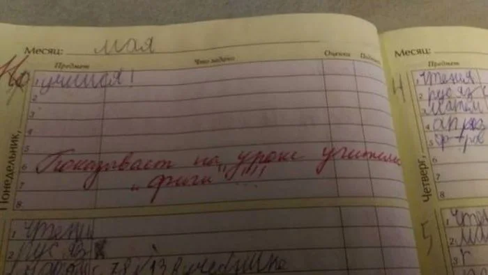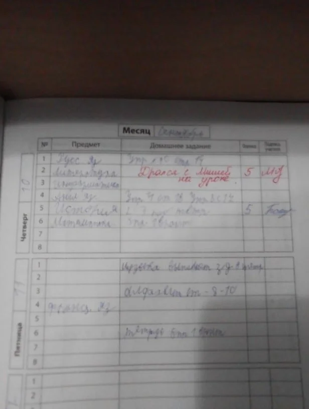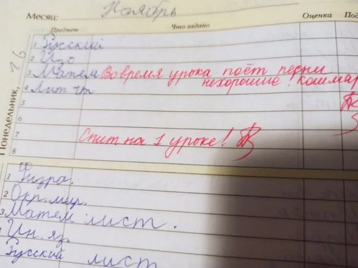 Племянник заработал пятерку на литературе и тут же подрался с одноклассником. Теперь в дневнике красуется вот такая надпись.