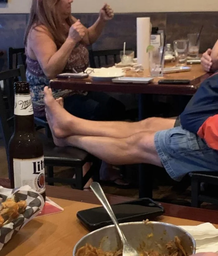 10. «Отличная идея — водрузить ноги туда, где люди едят и пьют»