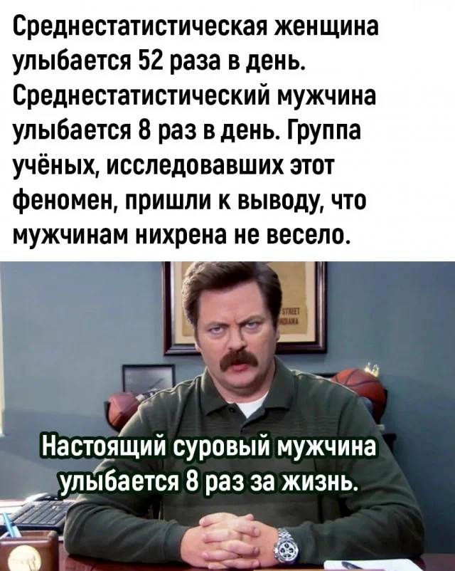 Как бабы, ей богу, настоящий мужик улыбается 8 раз в жизнь
