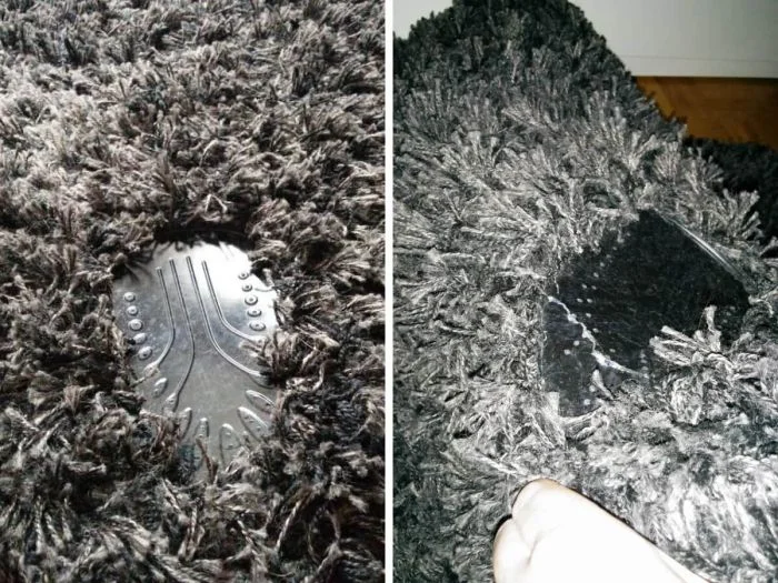 Кажется, что это отвалилась нижняя часть утюга, но нет. Это расплавленный пластик.