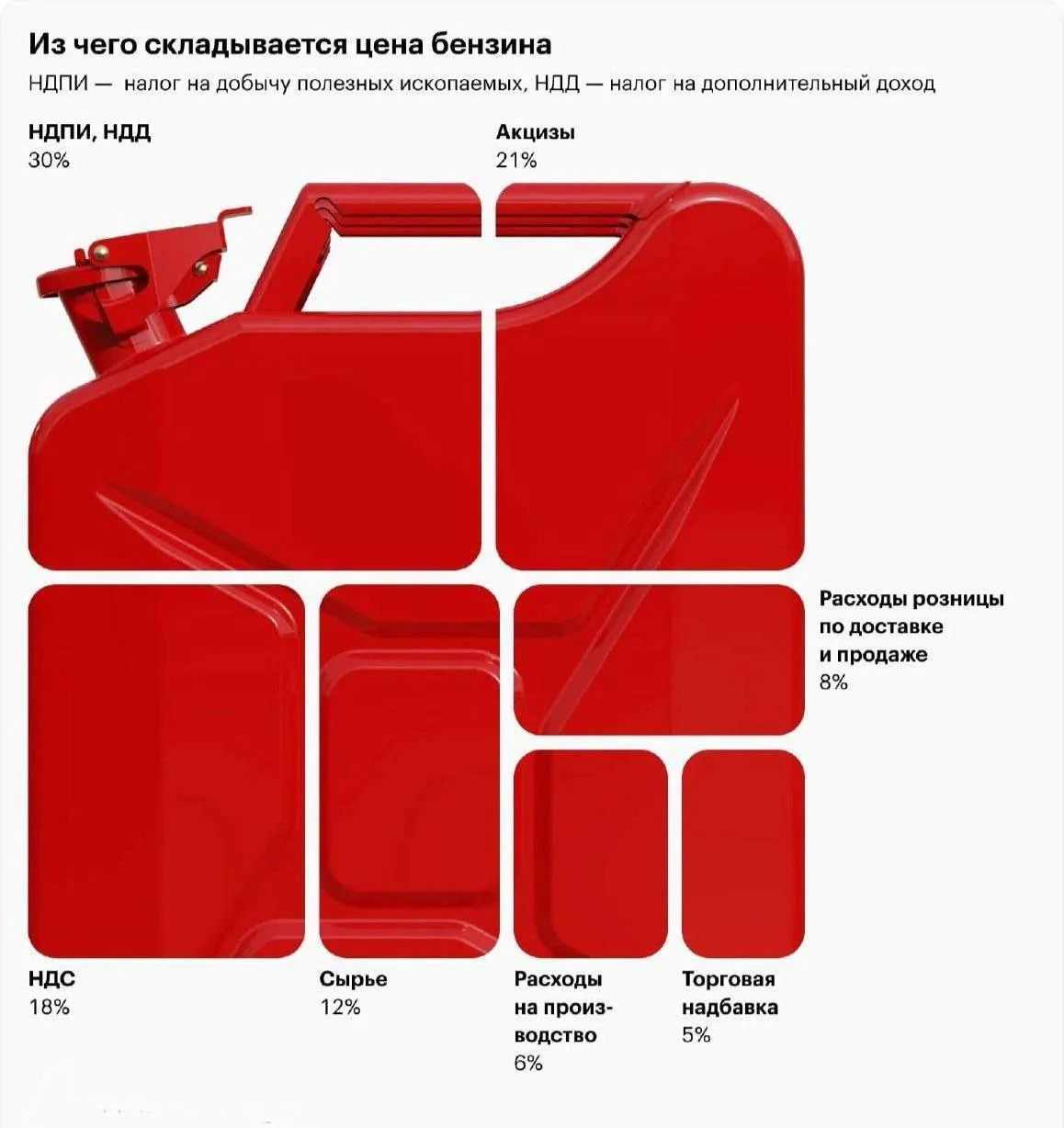 Kkk, а чё это всего на 20%? А везти бензин до потребителя, а бензовозы, а... да мало ли что? Я так думаю, процентов на 100%... и то...