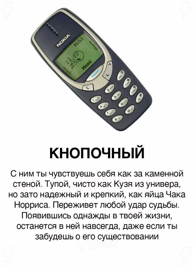 Как говорится, все в этой жизни познается в сравнении. И одна мадам с просторов соцсетей, описала парней, сравнив их с телефонами. Судя по количеству подробностей, барышня понимает о чем говорит. Нашли себя в этой классификации?
