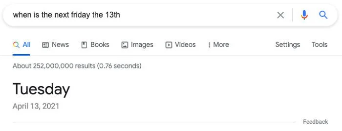 17. "Когда будет следующая пятница 13-е?" "Во вторник"
