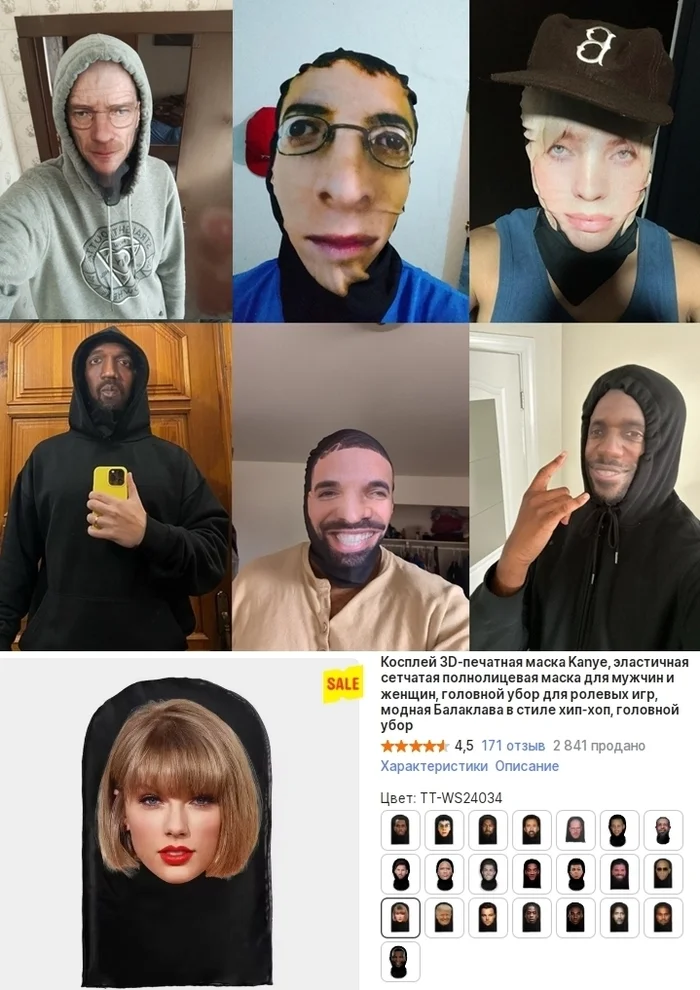 Вот такие забавные эластичные сетчатые маски-балаклавы появились на Али. Принты на них с различными знаменитостями, на голове смотрятся как низкополигональные модели персонажей в некоторых старых играх. Довольно весело =)) Маски найдены тут , некоторые другие персонажи тут .