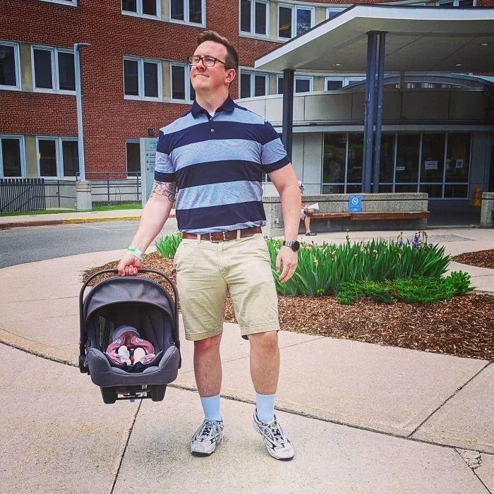 16. «Сегодня я надел отцовскую униформу и ступил на путь отцовства! Жена не разрешила купить мне «отцовские кроссовки», так что пришлось одолжить их у моего папы»